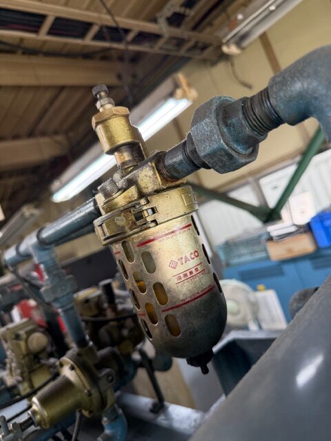 ここから必要量の潤滑油がエアーのラインを通って機械内部の可動部分を潤滑します。
